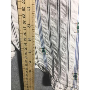 Womens Loft Button Up Shirt Square Detailing Cotton Novelty Print Striped Basic