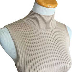 Womens Madison Grey Oatmeal Ribbed Mock Neck Sleeveless Top Blouse - Sz S