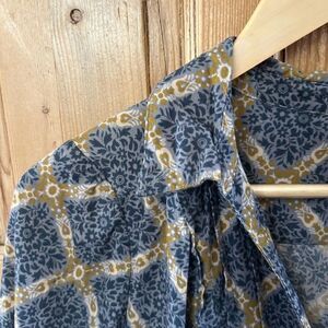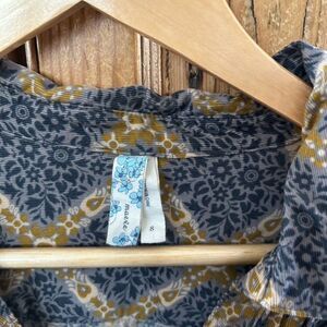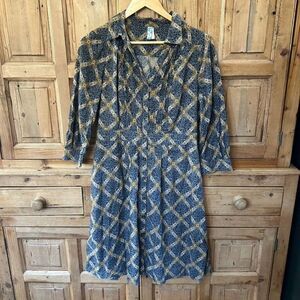 Womens Maeve 8 Button Front Shirt Dress Collared Pattern Blue Gray Yellow Anthro