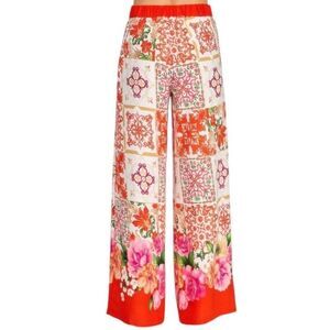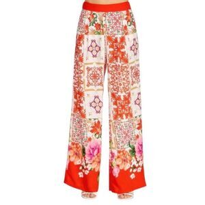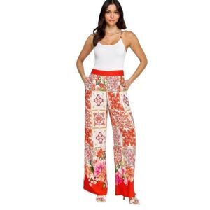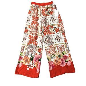 Womens Medium Bright Orange Floral Printed Wide Leg Lounge Pants Pull On NWT