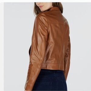 Women's Michael Kor's Genuine Leather Jacket im Camel Tan Sz Petite Small