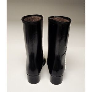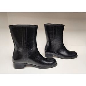 Womens Mid Calf Glossy Black Pull On Waterproof Rain Boots Size US 6.