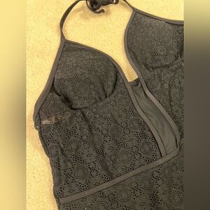 Women’s Mossimo Halter One Piece Bathing Suit L. Excellent condition. Mid section “lace” and see through partially.