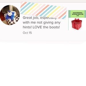 Send me a message so we can work together about your mystery box and to make sure we’ve got the right sizes for ya! Enjoy!