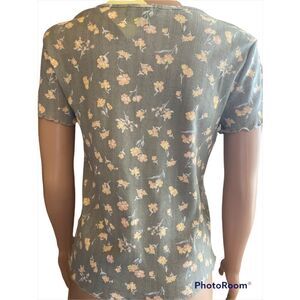New, sage green scoop neck cropped top, floral print, short sleeve, tagged size M, see pics for measurements for custom fit.