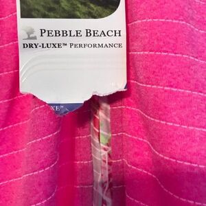 Pebble Beach women’s golf jacket with contrasting trim is the perfect addition to your golf wardrobe. Bright pink and white stripes with a beautiful contrasting piping adds style and class to this jacket.