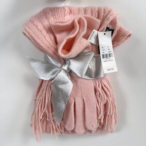 Womens NY & Co Pink Coquette Cottagecore Winter Knit Barbiecore Scarf Gloves Set