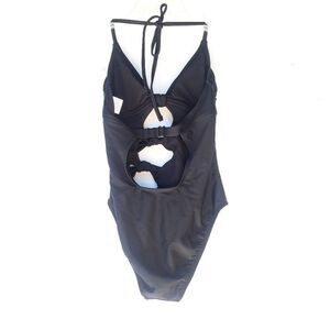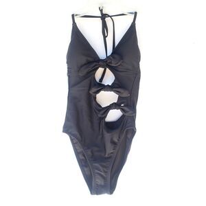 Women's new one piece tie front black backless swim suit XS