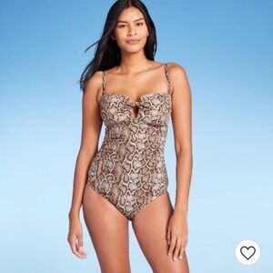 Women's NewTextured Pique Tie-Front High Coverage One Piece Swimsuit - Kona Sol M 8 - 10 NWT