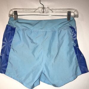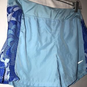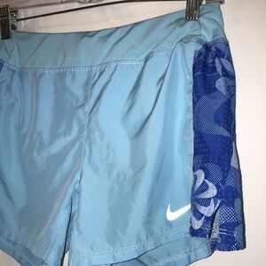 Nike Running Women's Elastic Waist Floral Side Sky Blue Athletic Shorts Size L