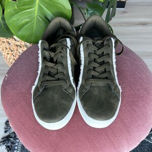 Women's Olive Green Sneakers Sherpa Details Size 8.5