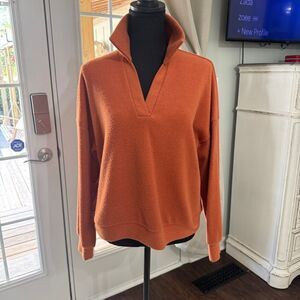 Stay cozy and stylish with this vibrant orange sweater. Perfect for any casual outing.