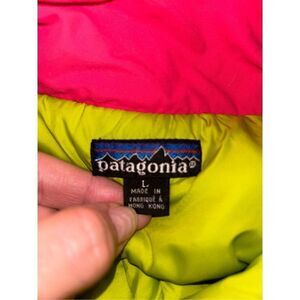This Patagonia Women's Jacket is the perfect addition to your winter wardrobe. With a mid-length parka style and insulated design, you'll stay warm and comfortable during the colder months. The outer shell is made of durable nylon and features a solid blue color with green lining and pink accents. The jacket/coat closes with both a zip and snap closure, and includes elastic corded waist for added comfort and insulation as well as corded at the hem. The sleeve cuffs have hook and loop closure to keep the warmth in.