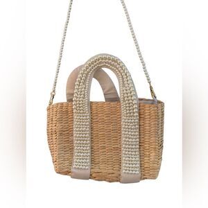Women's Pearl Detail Wicker Bohemian Beachy Mini Bag