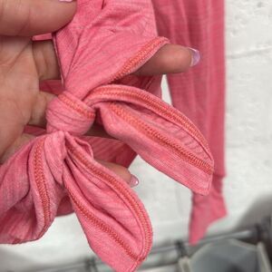 Women's Pink Striped LULULEMON Athletic Long Sleeve Open Back Knotted Top - XS