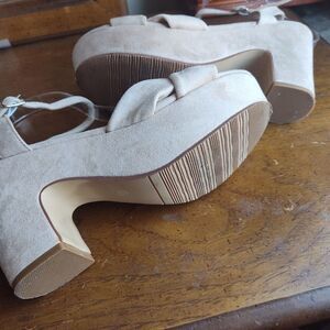 Women's Platform Heels Ankle Strap Sandals Peep Toe Suede Wedges 8.5