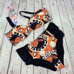 Women’s Plus Size Two Piece Swimsuits in Geo orange size 2X NWT