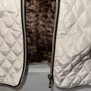 Stay stylish and warm with the Women's Quilted Cream Vest. This elegant vest features a quilted design and a cozy interior, perfect for layering.
