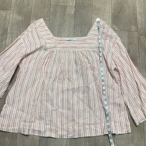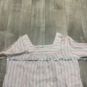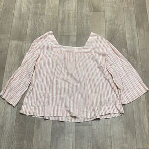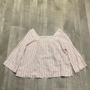 Womens Rachel Zoe 100% Linen Stripe Square Neck 3/4 Sleeve Top Shirt