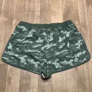 17” from top to bottom 3.5” inseam. 40” waist. Green/white color active Shorts. Size 3XL. In good condition.