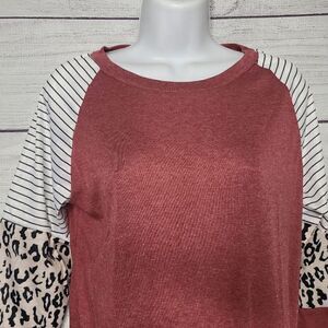 Women's Relaxed Fit Stripe Animal Print Top