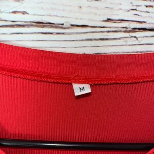 Women’s Ribbed Red V-Neck Bell Sleeve Blouse.