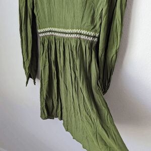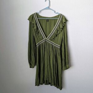 Women's SHEIN VCAY Plunging V-Neck Embroidered Ruffle Trim Dress Green Small Geo