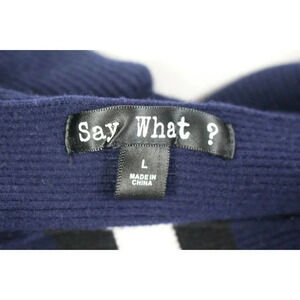 Women's "Say What?" Blue, Black and White Sweater in Sz Large. 48%Rayon 29%polyester 23%NYON.