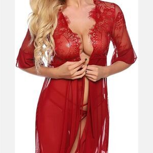 95% Polyester, 5% Acryliclingerie for women, boudoir lingerie, lingerie robe, ladies lingerie, negligee lingerie, maternity lingerie, babydoll lingerie for women, women robes, open front baby doll lingerieStyle: Women's V Neck See Through Lingerie Open Front Babydoll Lace Chemise Sleepwear Mesh Robe Sheer Nightgown with G-StringThis babydoll lingerie nightie dress features v neck, flare sleeve, and open front. You can wear it as a babydoll lingerie, sheer robe or lingerie cover upOccasion: Nightwear, Sleepwear. Perfect for honeymoon night, wedding nights, lingerie party, anniversaries, valentine's day, bedroom, sleeping, bathing, or special nights with your loverPackage Content: 1 x Women Lingerie Sleepwear with G-String