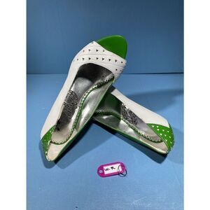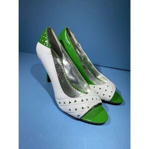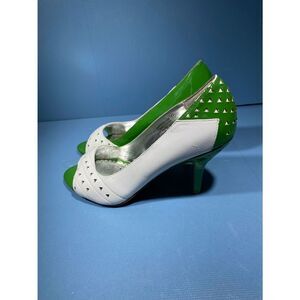 Womens Shoes High Heels White Green Embroidered 8 NAUGHTY MONKEY
