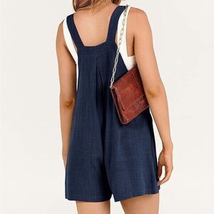 Casual button strap summer beach short lovely dungarees overall with pockets. Wear it over a tee or as a coverup for the bohemian effect.