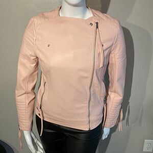 Womens Simply Styled Large Light Pink Blush Faux Leather Jacket - Size Large