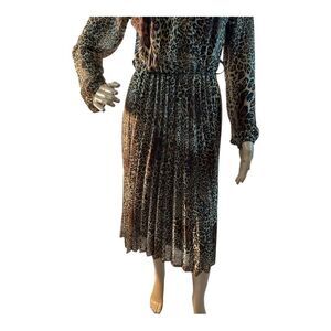 Women’s Size Medium Brown Leopard Animal Print Long Sleeve Midi Dress Made Italy