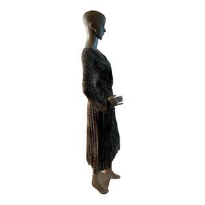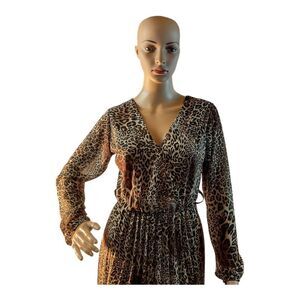 Elevate your style game with our stunning Womens Size Medium Brown Leopard Animal Print Long Sleeve Midi Dress.