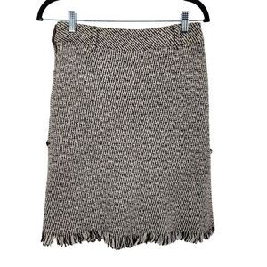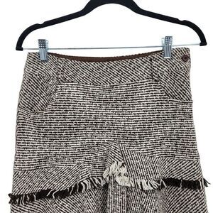 Womens Skirt Tweed Tiered Fringed Tea Length Pockets Boho Country Brown S