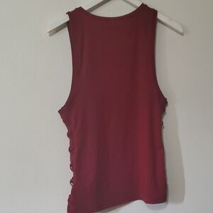 Stylish sleeveless top in a vibrant red color. Perfect for casual outings or layering. Add a pop of color to your wardrobe.