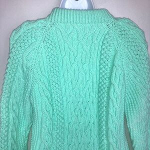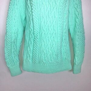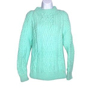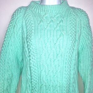 Womens Small Sweater Handmade Cable Knit Pullover Thick Mint Green NEW