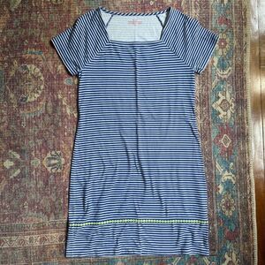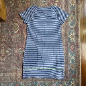 Women’s Small Vineyard Vines Striped Blue and White Dress with Green crochet