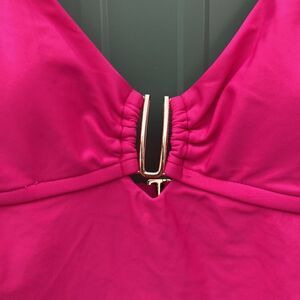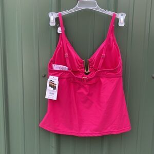 Women's Solid Fuchsia U-Ring Tankini Swim Top Swimsuit Bathing Suit Size S