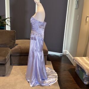 Women’s Strapless Lilac/Silver Formal Prom Party Dress with Corset Back. This dress is a beautiful color!