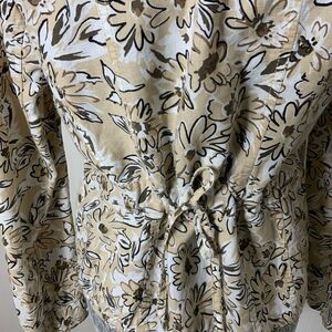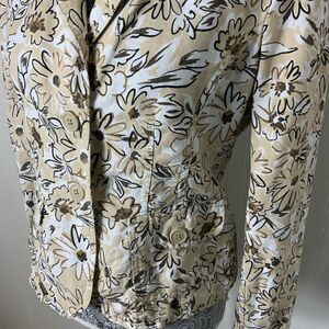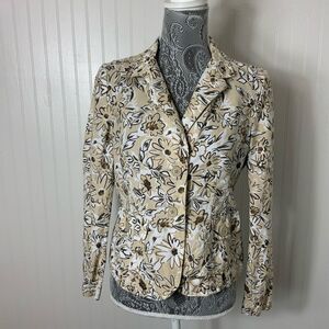 Women’s Studio Works linen blend blazers. Cute whimsical floral design with side pockets and back cinching tie. EUC size petite medium