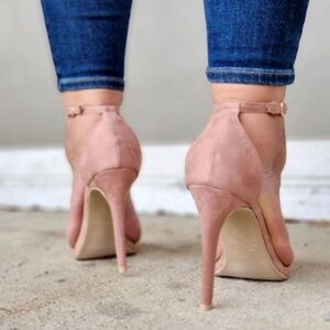 Women's Suede Strappy Ankle High Heel Sandals Blush Color
