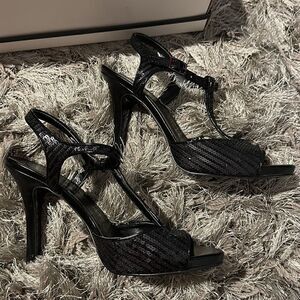Womens Tahari Black Strappy Sequined Heels size 7‎