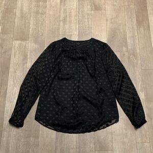 Womens Talbots Black Polka Dot Sheer See‎ Through Lined V-Neck Blouse Shirt