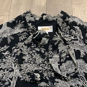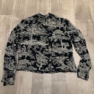 Womens Talbots Picnic Forest Sheep Graphic Button Down Tie Up Sheer Lined Shirt