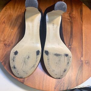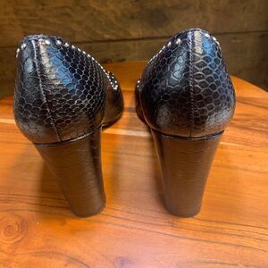 Gorgeous womens size 7B chunky heels. Good shape, peep toe.