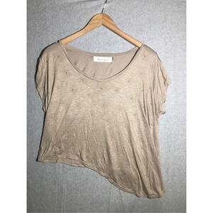 Womens Tbags Los Angeles Crop Top Brown Studded Asymmetric Hem Contemporary