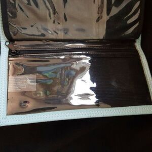 Womens Pocketbook Trifold Aqua Blue Wallet 8" Wide Zipper Pockets