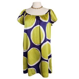 Glam Women's Tunic Top Silky Shiny Mustard and Blue Circle Design A-line Dress
