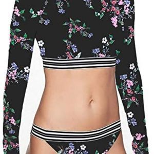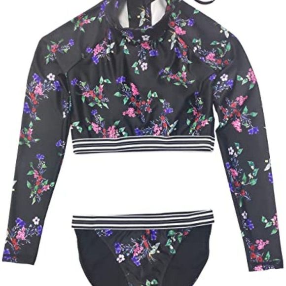 This long sleeve swimsuit is great modest and slimming design, vintage floral print, long sleeve with two pieces available. Protect good sun protection, ideal for paddle boardingStretchy, smooth and soft RDurable and 4-way stretch fabric that protects against rashes and abrasions, offers a perfect shape recovery and freedom of movement。